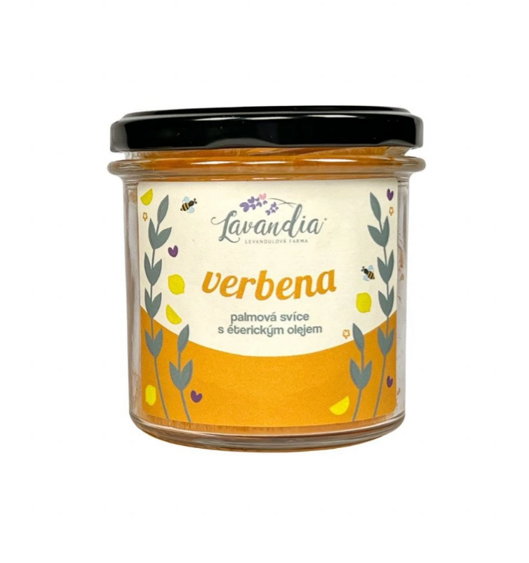 ložení: 100% palmový vosk, éterický olej.Doba hoření 24 hodin.